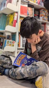 বাচ্চাটির বয়স ছয় কি সাত হবে। বই পড়ছে। বইটিকে